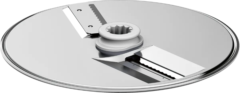 Das Herzstück dieser Wendescheibe ist das spezielle Zickzack-Messer, das die Fasern sauber durchtrennt, statt sie zu zerdrücken. Das Ergebnis sind exakte, gleichmäßige Scheiben, die nicht nur optisch überzeugen, sondern sich auch besser weiterverarbeiten lassen – egal ob für Pfannengerichte, Suppen oder Rohkost. Durch die gehärteten und geschliffenen Schneideinsätze bleibt die Schnittleistung zudem langfristig auf hohem Niveau.